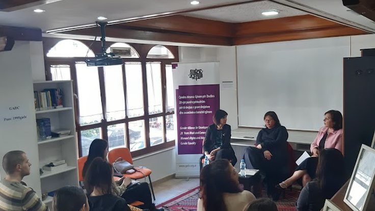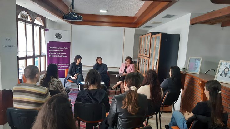 Ky takim u realizua në një diskutim të hapur me studentët, pasi znj. Mirela Arqimandriti prezantoi Bibliotekën e Studimeve Gjinore të GADC, një ambjent i cili mban mbi 2500 tituj librash të kataloguar, në gjinitë feminizëm, filozofi, bioetikë, letërsi etj.