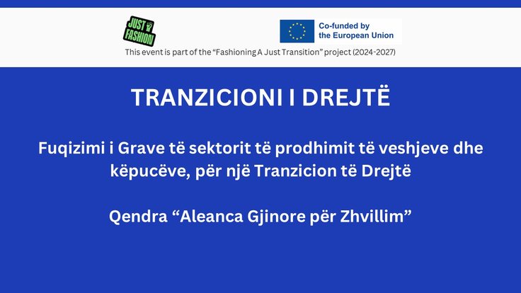 Ky projekt synon të mbështesë një tranzicion të drejtë dhe të ndershëm në industrinë e veshjeve në Shqipëri, duke u fokusuar te të drejtat dhe nevojat e grave punonjëse. I zbatuar nga GADC si pjesë e nismës më të gjerë “Fashioning a Just Transition”, projekti promovon kushte më të mira pune, barazi gjinore dhe qëndrueshmëri mjedisore.